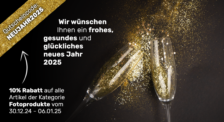 **Der Gutschein ist nicht mit anderen Aktionen, Rabatten oder Gutscheinen kombinierbar und eine Barauszahlung ist ausgeschlossen. Sie können den Gutscheincode während des Bestellvorgangs pro Kunde einmalig in Ihrem Warenkorb auf alle in der Kategorie Fotoprodukte erhältlichen Artikel einlösen. Bitte beachten Sie, dass der Code nicht automatisch übernommen wird, sondern manuell eingegeben werden muss. Kostenloser Versand innerhalb Deutschlands. Die Aktion ist gültig vom 30.12. - 06.01.2025.