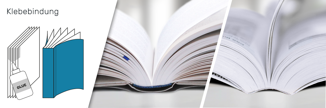 Klebebindung: Diese Bindung verbindet die Seiten mit einem speziellen Klebstoff, der für ein glattes und professionelles Erscheinungsbild sorgt. Ideal für Bücher und Broschüren mit vielen Seiten.