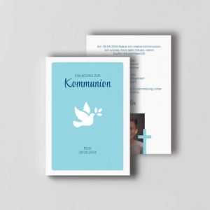 Feiern Sie die heilige Kommunion mit einer besonderen Karte? Unsere Kommunionskarte "Taube" ist perfekt dafür geeignet. Mit ihrem eleganten Design und dem symbolischen Taubenmotiv vermittelt diese Karte Ihre herzlichen Glückwünsche und guten Wünsche zu diesem bedeutenden Anlass.