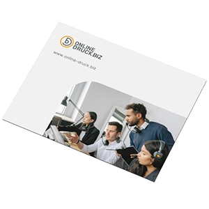 - Bilderdruckpapier glänzend: Hochglänzende Oberfläche mit maximaler Farbbrillanz. Für bildstarke Motive, Produktkarten und Aktionen, wenn starke Leuchtkraft im Vordergrund steht.